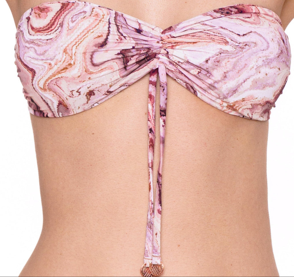 A versatile, fixed-padded bikini top designed for ultimate style and comfort. Featuring removable neck straps, it easily transforms into a chic strapless top. The subtle detail at the center allows you to wear it as a tube top or strapless cup, offering multiple looks in one. With adjustable ties in the back, the Bianca top ensures a perfect fit every time. Ideal for those who value both fashion and functionality.